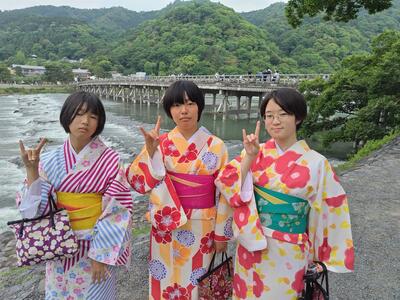 最終日のクラス別活動、3-2は嵐山を散策しています!