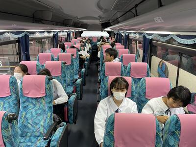 全員が乗り込み出発!トランプやおやつなど、思い思いに過ごしています!
