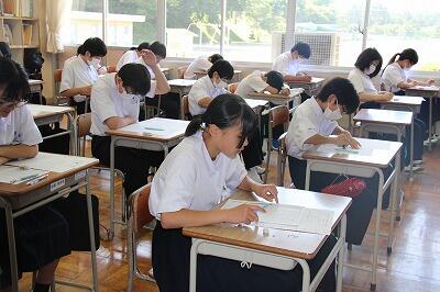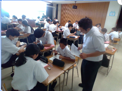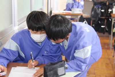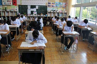 3年生の授業の様子です。自習の時間でしたが、さすが3年生、定期テストに向けてみな黙々とテスト勉強を行っていました。社会の授業では、教師の説明を真剣に聞き、授業に集中して臨んでいました。