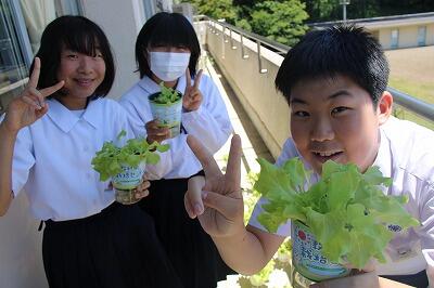 2年生の技術の授業では、種を植えたラディッシュがだいぶ大きく育ってきていました。収穫の時期が楽しみですね。