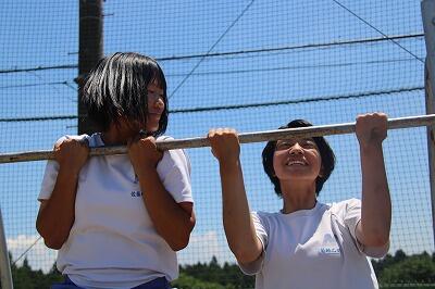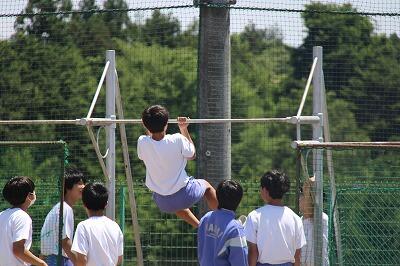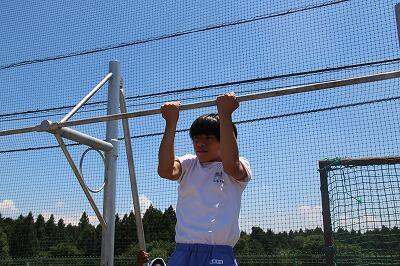 3年生の体育の授業では、懸垂の回数を記録していました。なかなか懸垂ができずに苦戦していた生徒が多かった中、さすがは体育の先生。石川先生は懸垂だけでなく、蹴上がりも披露してくださいました。