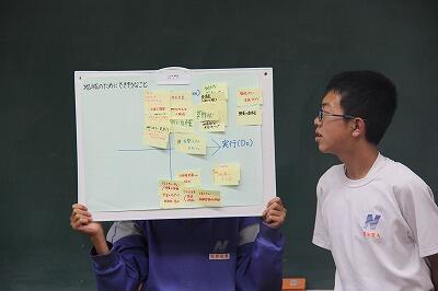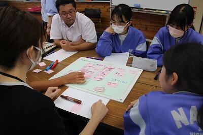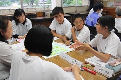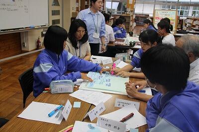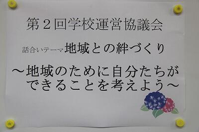 今回の学校運営協議会は、「地域との絆づくり~地域のために自分たちができることを考えよう~」をテーマに、協議委員さんと各学級の代表生徒、教職員がグループごとに話合いの場を持ちました。代表生徒からは、各クラスで話し合った意見をもとに、地域に貢献できることや地域と連携して活動できることなど、建設的な意見が活発に発表され、今後の活動に期待がもてる話合いとなりました。今日の話合いをもとに、学校運営協議会、PTA執行部の方々と連携をとりながら、「地域とともにある学校づくり」を進めていきたいと思います。