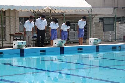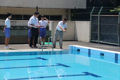 今日は気温が30度を超え、教室では1日中エアコンをかけた状態でした。このような暑い日はプールが最高ですね!今日の昼休み、代表の生徒会役員が参加した中でプール開きを行い、生徒が安全にプールを利用できるようお祈りしました。今週から体育の授業ではプールが始まります。生徒の皆さんは楽しみなことだと思いますが、安全には十分気をつけてくださいね。保護者の皆様もご指導の程、よろしくお願いします。 生徒が安全に利用できますように…