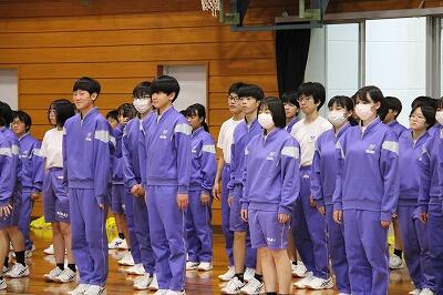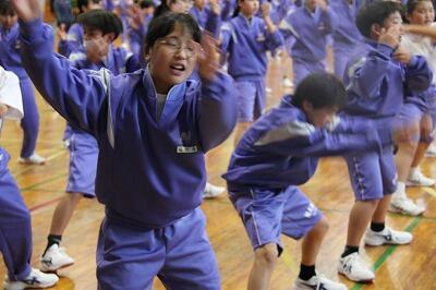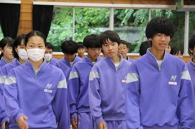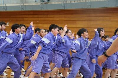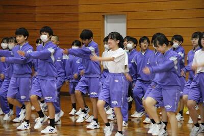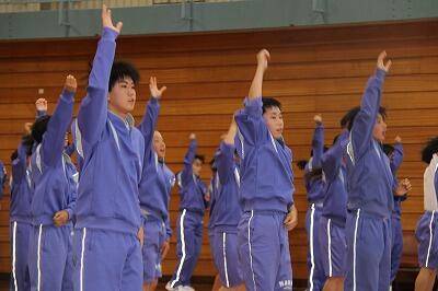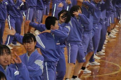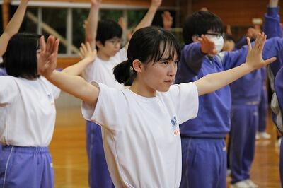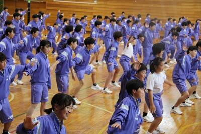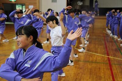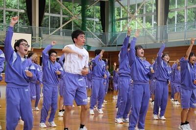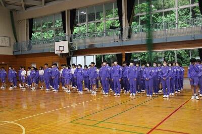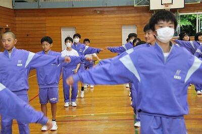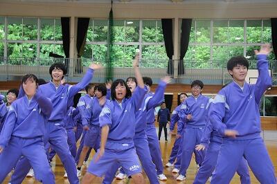 外は激しい雨のため、運動会の学年練習、全体練習は体育館と武道館で行いました。校庭での練習はできませんでしたが、生徒はみなやる気に溢れ、集合時間前には整列を完了し、学年練習、全体練習に真剣に取り組んでいました。特に3年生の取り組む姿勢はすばらしく、ソーランの練習では大きな声で1,2年生をひっぱり、全体の士気を高めてくれていました。