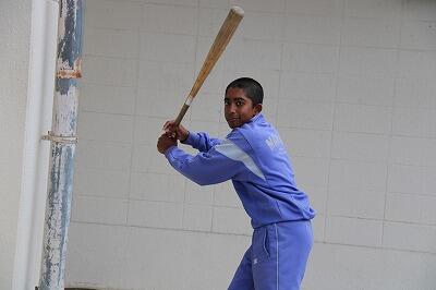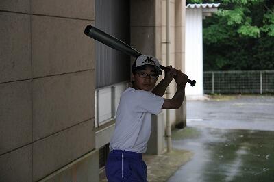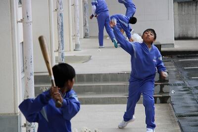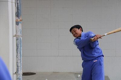◇体育館前でシャトル打ちに励む野球部