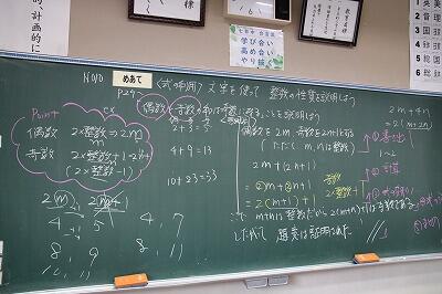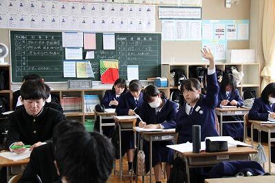 2年生の数学の授業の様子です。みな真剣に授業に臨んでおり、挙手・発言も多く見られました。