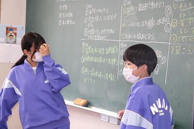 1年生の学級活動では、宿泊学習の出し物の計画と準備を進めていました。〇✕クイズやダンスなど、グループごとに様々な企画があり、本番が楽しみです!