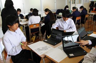 1年生の美術の授業では、絵画の構図を考えていました。