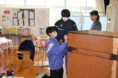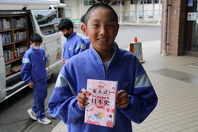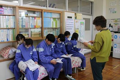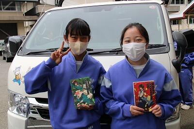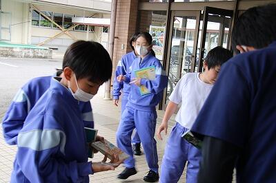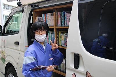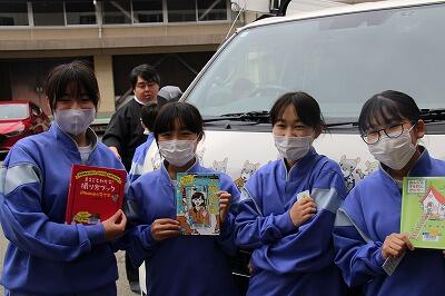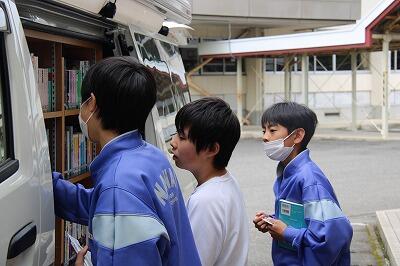 また、昼休みは生徒が楽しみにしている移動図書館「とっくん号」が来てくれました!読書好きの生徒は多くの本を返却、借用しており、町の職員の方からも「七井中学校の生徒は多くの本を借りてくれてありがたいです!」と、お褒めの言葉をいただきました。