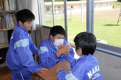 生徒は特別5校時日課で、放課後、部活動がある生徒は2時間ほど活動時間がありました。しかし、今日はあいにく一日雨模様。それでも、外の部は練習内容を工夫し、どの部も熱心に練習に励んでいました!さすが七井中学校の生徒たちです!