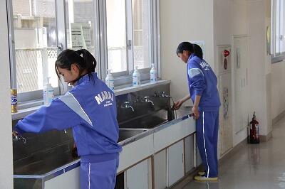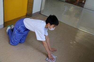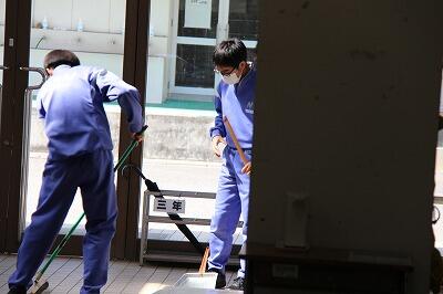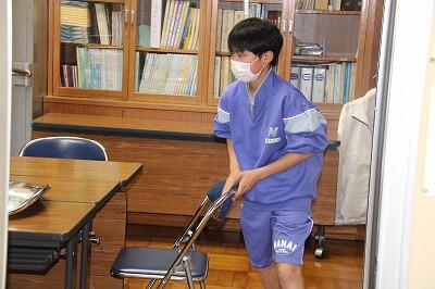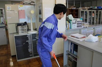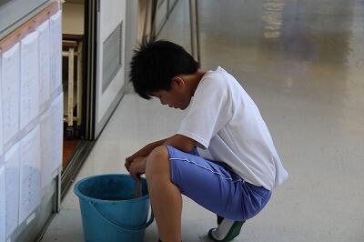 清掃時の様子です。どの生徒も黙々と清掃を行っています。「清掃は心を磨く時間」、進んで作業する姿から、生徒の心が育っていると感じます。