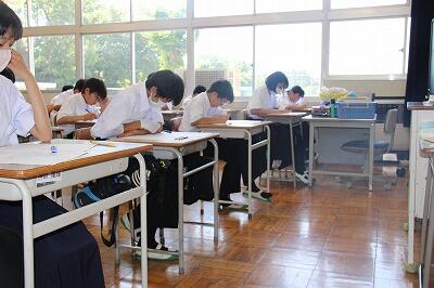 今日は前期中間テストの最終日でした。生徒の皆さん、ベストを尽くせたでしょうか?1年生にとっては初めての定期テスト。普段の授業の取組はもちろんのこと、家庭学習の取組の大切さを実感したことと思います。自己の取組をよく見直し、これからの学習に生かしてほしいと思います。