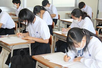 3年生の授業の様子です。自習の時間でしたが、さすが3年生、定期テストに向けてみな黙々とテスト勉強を行っていました。社会の授業では、教師の説明を真剣に聞き、授業に集中して臨んでいました。