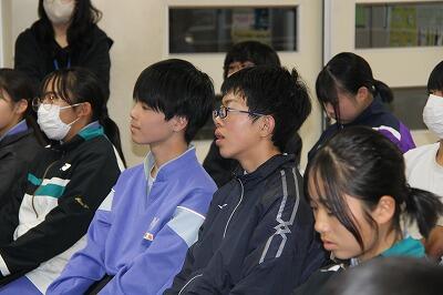 生徒の登下校における交通安全では、生徒自らの命を守るために保護者、地域の皆様のご協力をいただきながら、学校でも常日頃から継続して指導しているところです。特に下校時では日が暮れるのも早くなり、特に注意が必要です。しかしながら、ここのところ、自転車の乗り方で指導をする場面があり、交通安全の徹底を図るために臨時の全校集会を行いました。生徒の命を守るために、今後も継続して交通安全指導に力を入れてまいります。生徒の交通安全意識を高め、交通安全の徹底を図るために、保護者、地域の皆様のご協力もお願いします。