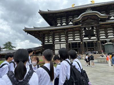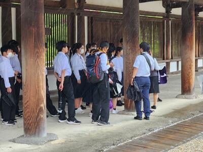 修学旅行 法隆寺を出発し宿舎に向かいます