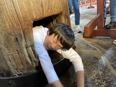 事前の調べ学習で調べた七不思議を見学して周っています。