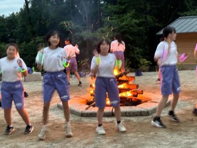 2学年の生徒が1番楽しみにしていたキャンプファイヤー。まるでコンサート会場にいるような盛り上がり。でも、時間は守り、最後の後片付けも完璧。最後は実行委員長のTさんのダンスに土屋先生のボーカルでチューチュートレイン。感動が少しでも伝われば幸いです。