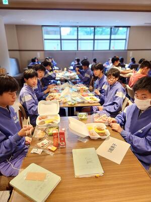 朝ごはんを食べている生徒もいます。今日一日頑張るエネルギーチャージ中です!