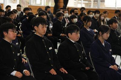 令和6年度の入学式を教育長様を始め、来賓の方々、多くの保護者にご出席いただいた中、挙行することができました。新入生は緊張もあったかと思いますが、担任の先生の呼名に大きな返事で応え、また、式中の態度も大変立派でした。また、2,3年生も新入生を温かく迎え入れ、校歌を大きな声で歌う姿は先輩としての自覚が感じられました。式後は天気も回復し、保護者の方を交えて入学の記念写真を撮ることができました。1年生の皆さん、今日はとても疲れたことでしょう。皆さんのキラキラした瞳にこれから始まる中学校生活へのやる気が伝わってきました!また、保護者の皆様、改めましてお子様のご入学、おめでとうございます!保護者の皆様、地域の皆様と連携し、協力し合いながらお子様の健全育成に全職員で取り組んで参ります。今後とも本校の教育活動へのご理解とご協力の程、よろしくお願いします。