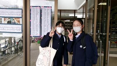 クラス発表の掲示板をみてから教室に入ると、七井小で気心知れた仲間たちであるためか、すぐに新しいクラスメートと談笑していました。みな明るく元気で、入学するのを楽しみにしていたようです!校門前の桜の前で、記念写真も撮ることができました!