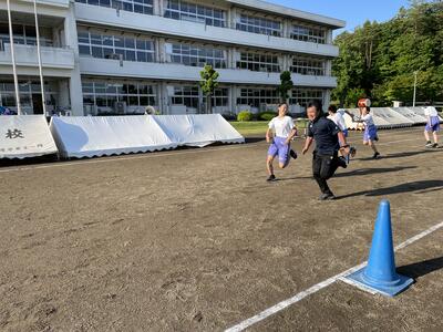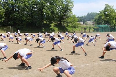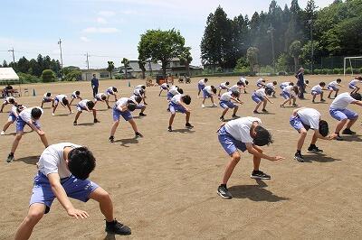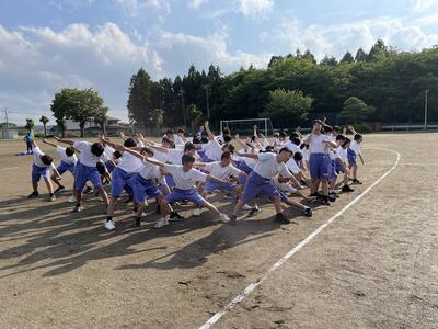 今日から郡市総体陸上競技大会に向けて、希望者による特設陸上部の練習が始まりました。今年度は希望者も多く、早朝練習による生徒、保護者、職員の負担を考慮し、昼休みに帰りの会を行って清掃の時間から練習を行う形をとっています。生徒は学校体制で練習環境を整えてもらっていることに感謝の心をもって、練習に真剣に臨んでいました。