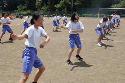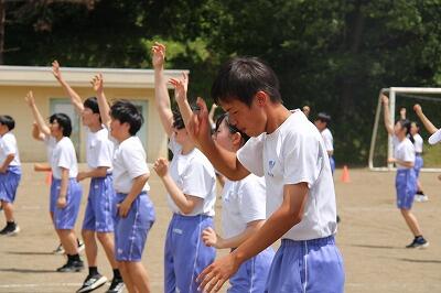 本校では、生徒間の良好な人間関係を築き、学年、学級の居場所づくり、絆づくりの一環として、生徒会主催による「ふれあい活動」や「スポーツフェスティバル」を年間を通して計画的に実施しています。今日の昼休みでは、来週の金曜日に予定されている「学級対抗8の字跳び大会」に向けて、どのクラスも熱心に練習に励んでいました!