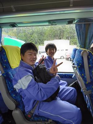 出発式の後、生徒はクラスごとにバスに乗り込み、元気に出発しました。