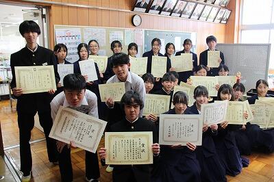 12月10日(水) 朝会(表彰伝達) 投稿日時 : 10:48 管理者 カテゴリ: 今回の表彰は運動面、文化面ともに多くの生徒が表彰され、予定された時間いっぱいまで表彰が行われました。受賞された生徒の皆さん、おめでとうございます!