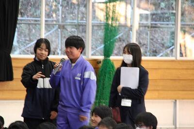 図書委員会の主催で、ふれあい活動「ビブリオバトル」を行いました。「ビブリオバトル」とは、「人を通して本を知り、本を通して人を知る」をコンセプトにしています。参加者がおすすめの本を持ち寄り、1人3分で紹介し、その後質疑応答を行い、最終的に一番読みたくなった本を投票で決める発表会です。堅苦しくなく、読書の楽しさを共有し、新しい本との出会いを広げることを目的としており、学校や図書館、カフェなど様々な場所で楽しまれています。