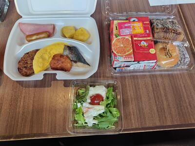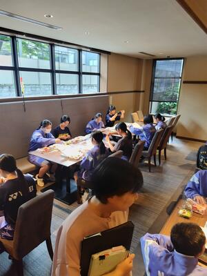 今日は着付け体験です。しっかり朝食をとり、備えます。