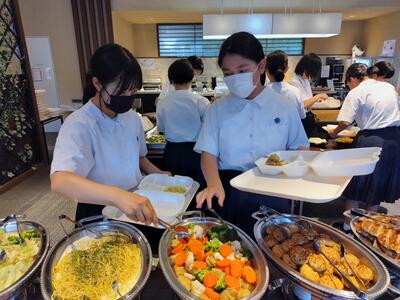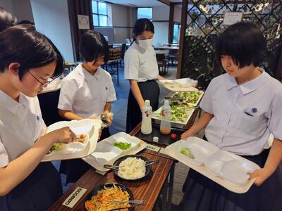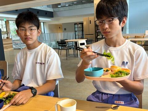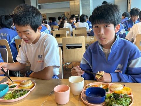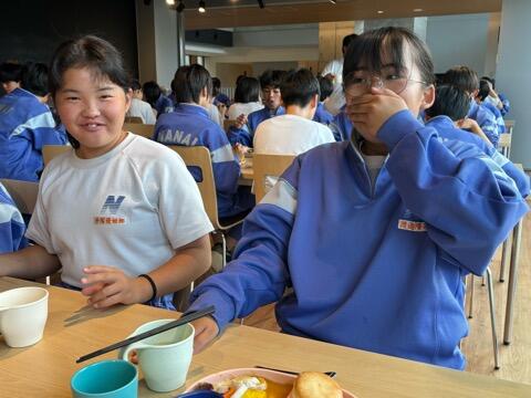こめっこパン、もちもちしておいしい!食欲旺盛な生徒たちのために、ご飯も用意。みんな美味しくいただきました!