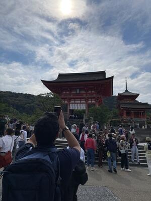 清水寺にて。お天気は晴れています。みんな笑顔です。