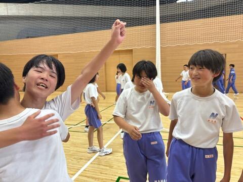 体育館で、クラス対抗ドッジボールを行いました!レクではなく、本気モードの熱い戦い。激戦を勝利し、涙する生徒もいました。