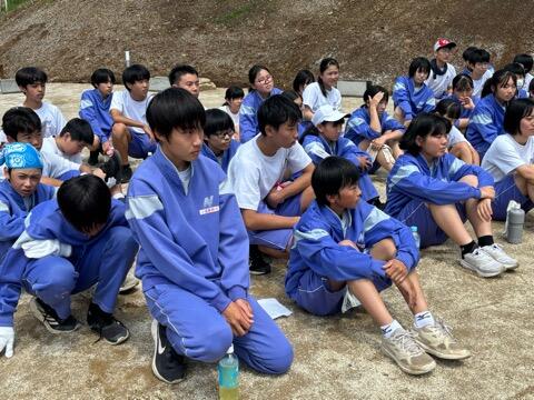 2年生の体育では、6日(木)に予定されている新体力テストに向けて、ハンドボール投げの練習を行っていました。みんな昨年度より記録が向上しており、35M以上投げた生徒もいました!