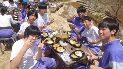 本日は晴天にも恵まれて、カレー作りができそうです!生徒はみな元気です!