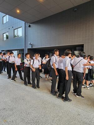 みかも自然の家宿泊学習の予定されていた全ての活動が終了し、退所式を行いました。生徒たちは集団生活のルールを守り、友との絆を深め、恵まれた自然環境の中、充実した活動を行うことができました。スタッフの方からも、「素晴らしい生徒たちで、スタッフとしてご一緒させていただき、大変気持ちよくサポートさせていただきました。後片付けもきれいに行ってくださり、ありがとうございました」とお褒めの言葉をいただきました。この宿泊学習を通して、生徒たちのよさと成長を感じることができました。2年生、最高の、生徒たちです!