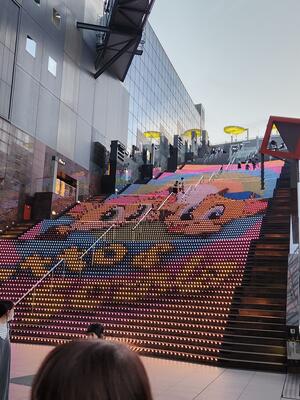 イルミネーションの階段、フロアーから見える京都タワー。昼間とは違い、幻想的です。