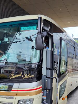 2日目、班別見学出発前に運転手さんと記念撮影です。