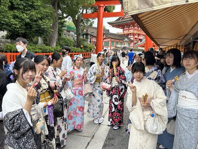 最終日のクラス別活動、3-2は嵐山を散策しています!