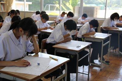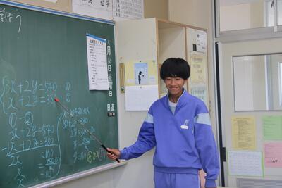 3年生の授業の様子です。自習の時間でしたが、さすが3年生、定期テストに向けてみな黙々とテスト勉強を行っていました。社会の授業では、教師の説明を真剣に聞き、授業に集中して臨んでいました。