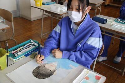 [4校時 3-1美術]自画像の制作に取り組んでいました。みんな上手に描けています!