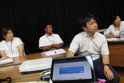 保健員会では、スローガンのデザインを決めていました。どの委員会も自分から進んで活動していました。