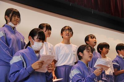 3年生は、川をきれいにするボランティアを通して、きれいになる川を見て感じた気持ち表現した。物事を継続する難しさを感じていたが、ボランティアが好きで継続できている。「継続は力なり」。今後も好きなことを見つけ、それを継続していきたい、ということを主張しました。