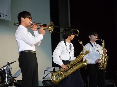 また、今回は町三中学校合同でも3曲演奏し、七井中セレクトの「キセキ」を部長が曲紹介しました。たくさんのメンバーで演奏している表情は、とても楽しそうでした。
