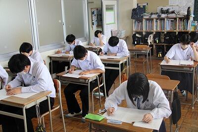 運動会明けの週の初めでしたが、遅刻・欠席者も少なく、生徒は元気に登校しました。授業にも真剣に臨んでおり、特に3年生は今週末に行われる実力テストに向けて、朝の自習時は静かにテスト勉強を行っていました。