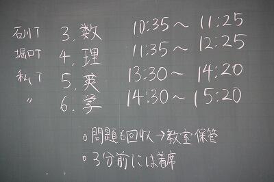 3年生では、来週の金曜日から2泊3日の修学旅行が予定されています。運動会、修学旅行と、生徒にとって楽しみな行事が続きますが、その前に本業の勉強にも全力投球です!第1回目の実力テスト、好成績を収めて修学旅行にいけるといいですね。がんばれ3年生!