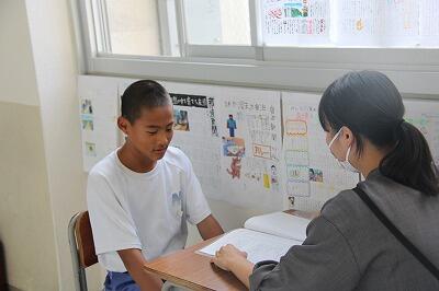 保健員会では、スローガンのデザインを決めていました。どの委員会も自分から進んで活動していました。
