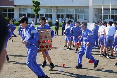 放課後の全体練習では、全校生徒による紅白対抗の種目の練習を行いました。昨年度とはまた違った競技で、見応えがありますので本番を楽しみにしていてください。