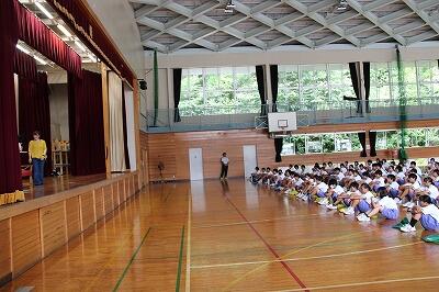 3校時に1学期の終業式を体育館にて行いました。明日から夏休みになりますが、健康、安全に気をつけて、学習に、部活動に、目標をもって充実した夏休みを過ごしてほしいと思います。2学期、また元気に登校してくれることを楽しみにしています。