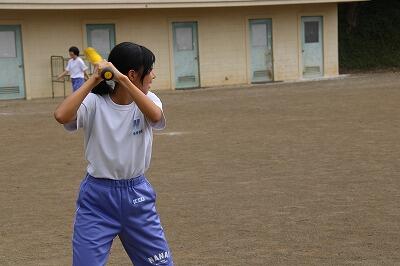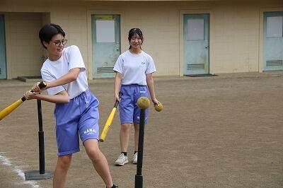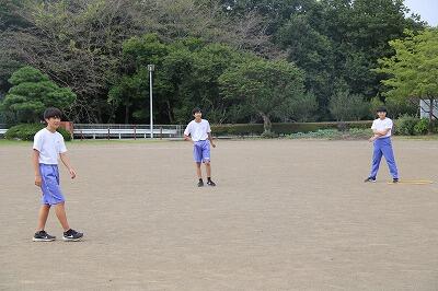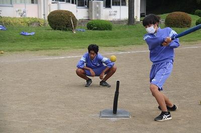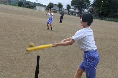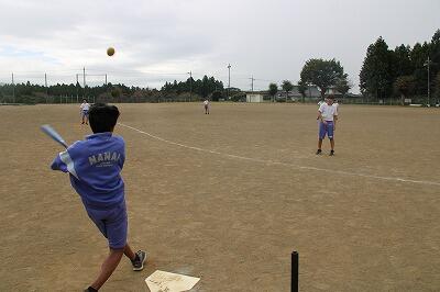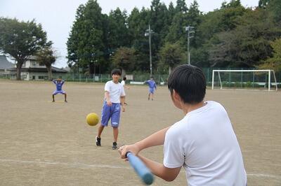[3校時3-1 体育]青空が広がる校庭で、ソフトボールを行っていました。練習の成果が見られ、バッティングも向上しています!